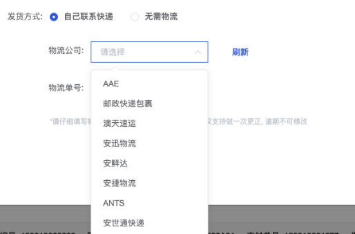 确认发货:支持多包裹发货;