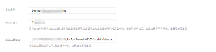 6.填写企业信息:类型是公司还是个体;公司名称、公司注册号、公司注册地址