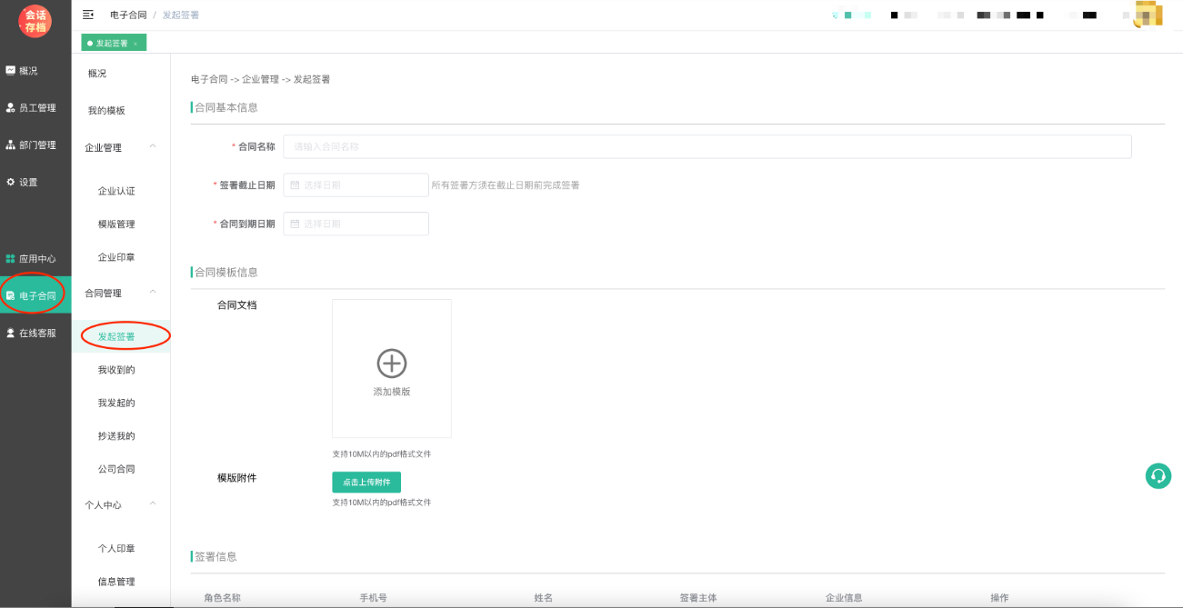 - 合同名称:在合同列表、签署短信等显示,用来识别不同的合同