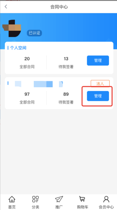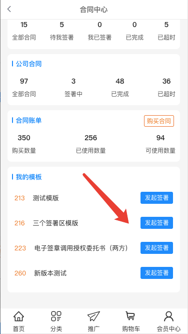 2、员工账号如果没有显示合同模版,则表示法人没有授权员工模版,需要登录电脑端操作授权;
