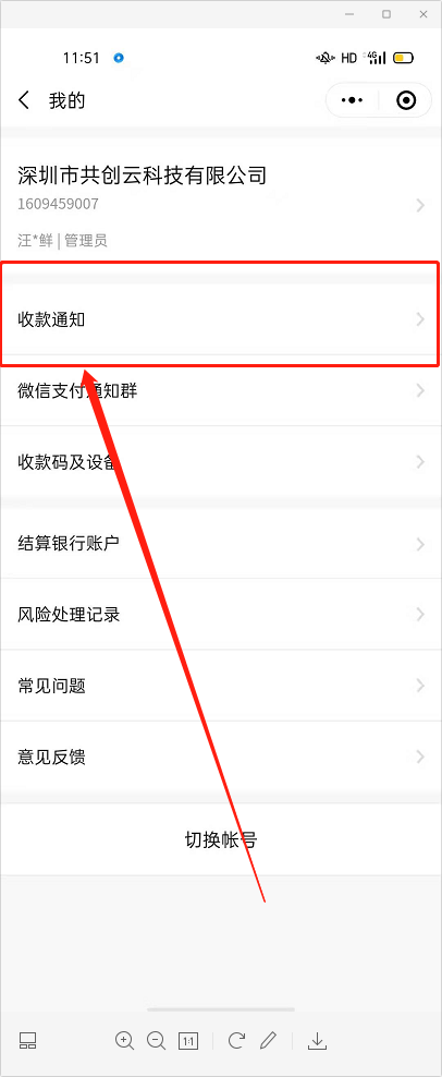 4.点击-我的账户-我是商家-授权商户号登录-点击公司名称-收款通知-开启公众号通知-语音播报通知。