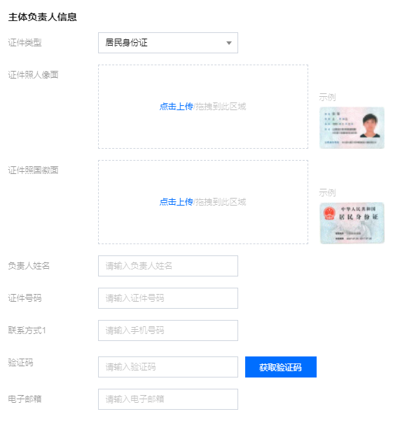 2.在 “主体负责人” 模块,填写相关信息。如下图所示: