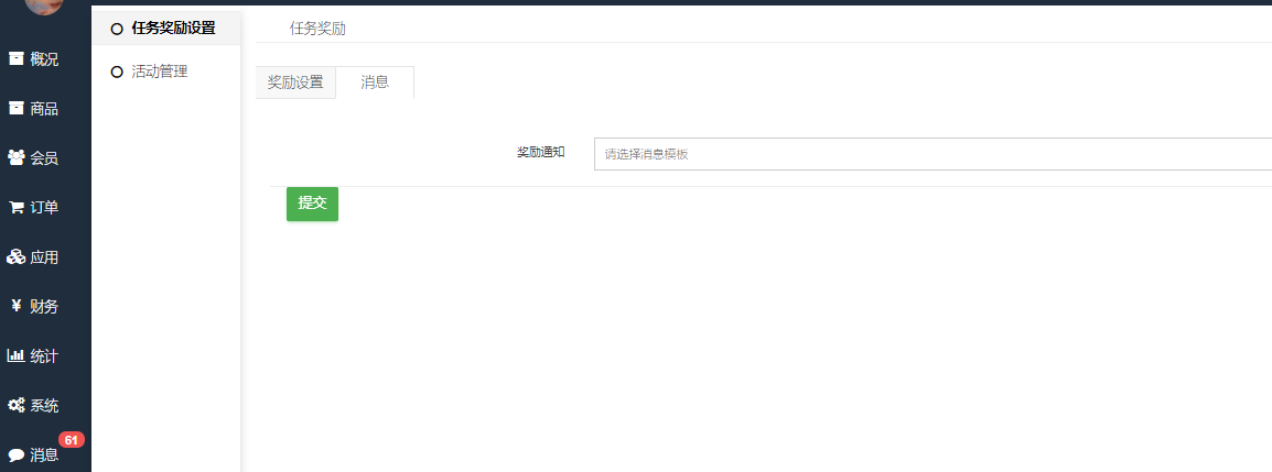 任务奖励:后台创建活动,活动里添加任务,满足任务设置的条件就可以获得奖励,奖励需要到前端会员中心领取。