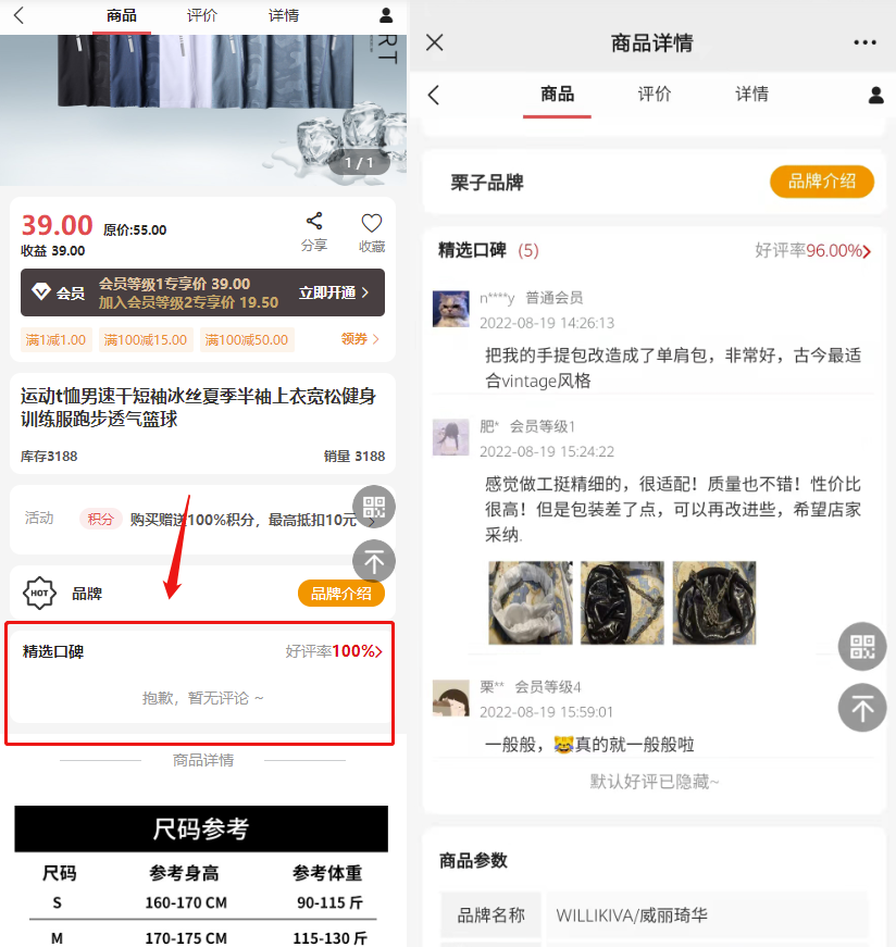 不开启显示,商品详情页不显示评论,效果如下