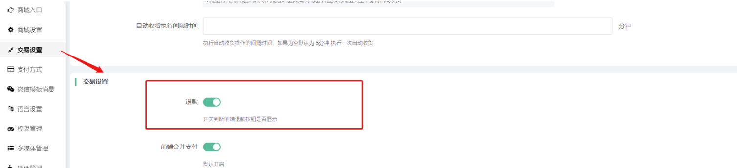 3)完成订单多少天内可申请退款:设置订单完成n天内可发起退款申请,如果设置0则不允许完成订单退款。