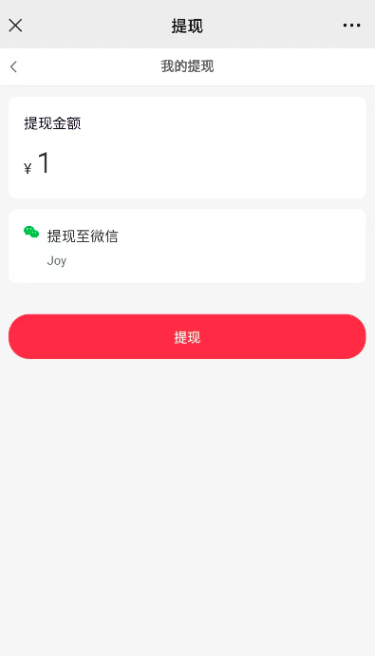 点击确认收款跳转到我的提现页面,点击提现则会弹出确认收款的页面(弹窗里的转账类型:现金奖励就是商户申请时选择的转账场景)